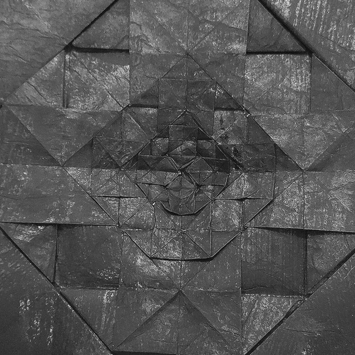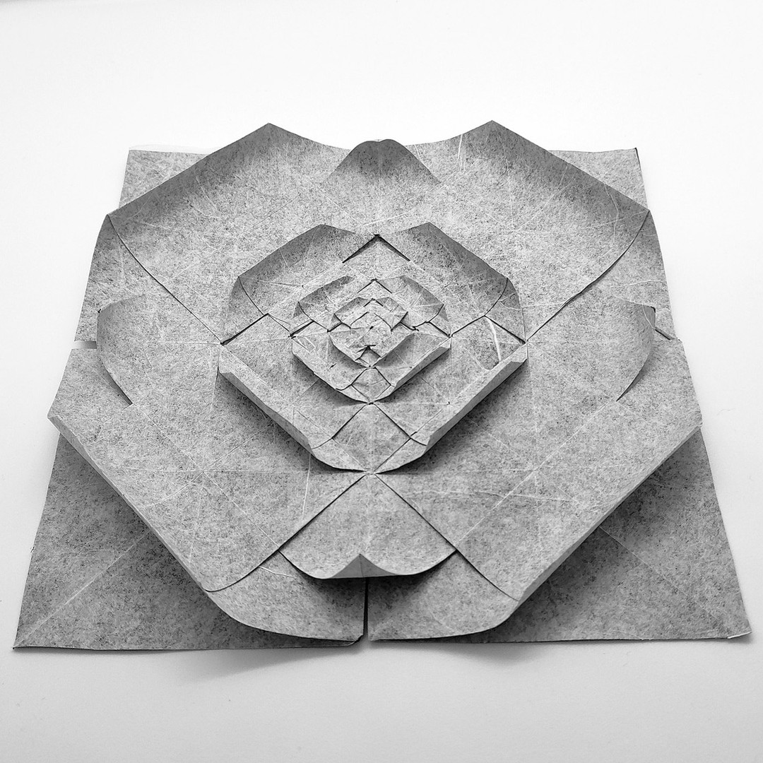 Kaleidoscope Recursion, folded from one uncut double tissue paper. The diagrams were published in International Origami Internet Olympiad 2021 (round 2 - task 7).